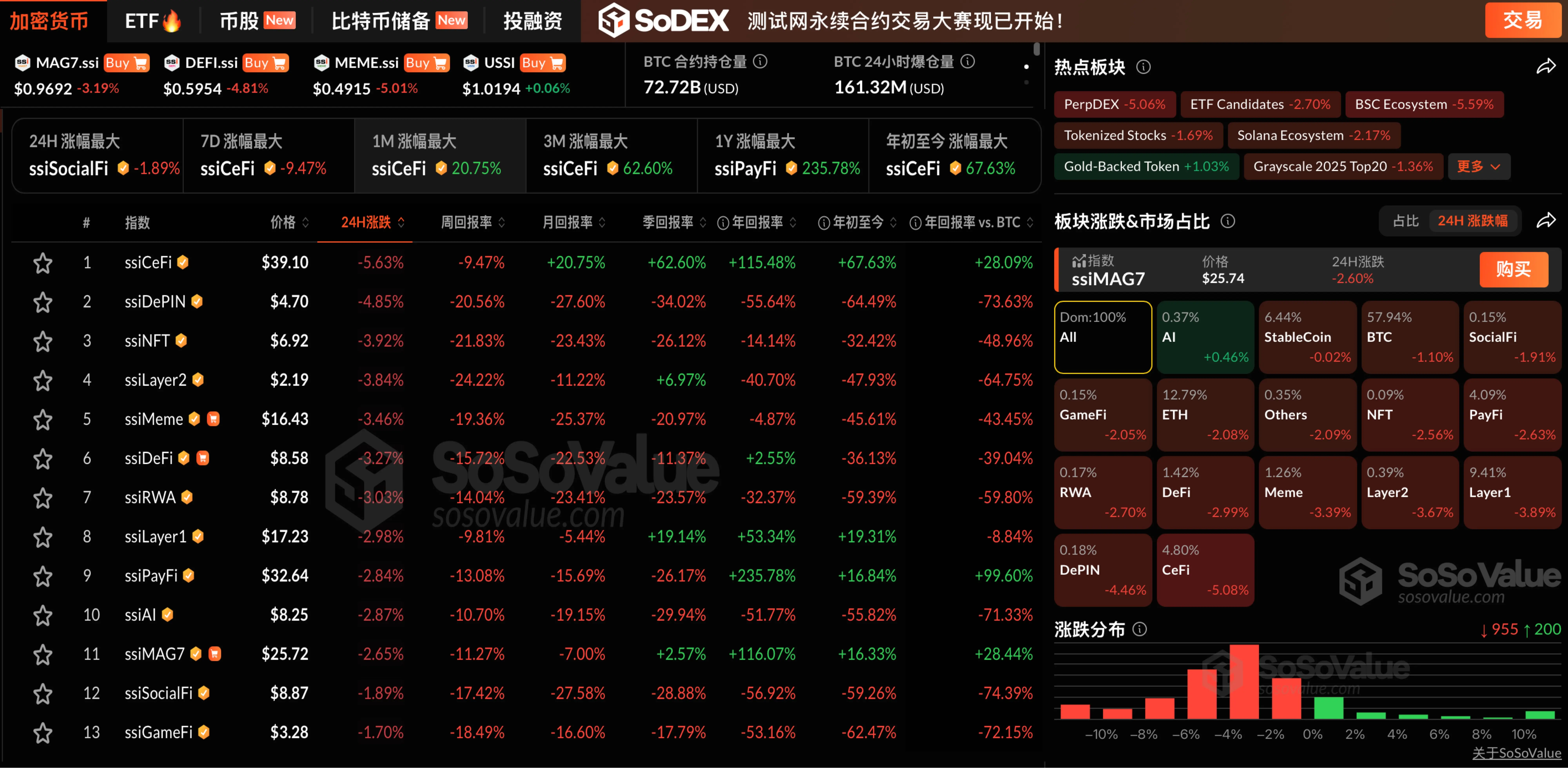 ChainCatcher 消息,根据 SoSoValue 数据,加密市场各板块普遍下跌,其中,Bitcoin(BTC)下跌 1.1%,跌破 11.3 万美元。同时,Ethereum(ETH)下跌 2.08%,跌破 4200 美元。