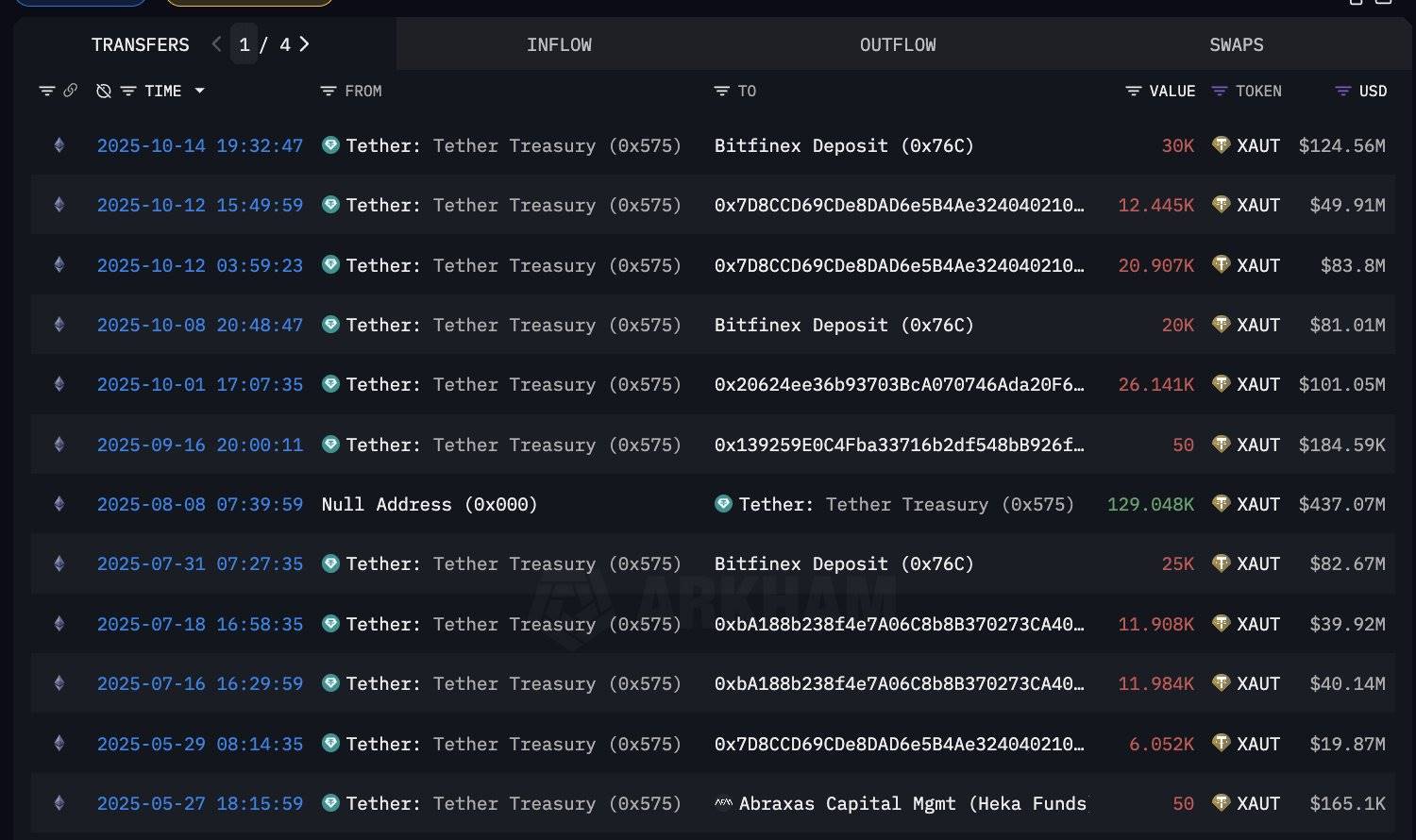 深潮 TechFlow 消息,10 月 15 日,据加密分析师 Emmett Gallic(@emmettgallic)监测,Tether 自 5 月以来已发行超过 6 亿美元的黄金支持代币 XAUT。