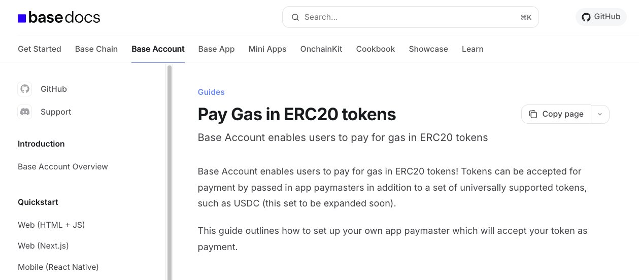 深潮 TechFlow 消息,10 月 16 日,Coinbase CEO Brian Armstrong 在社交媒体发文表示,用户可以在 Base 网络上使用任意 ERC20 代币(包括 USDC)支付 Gas 费用。