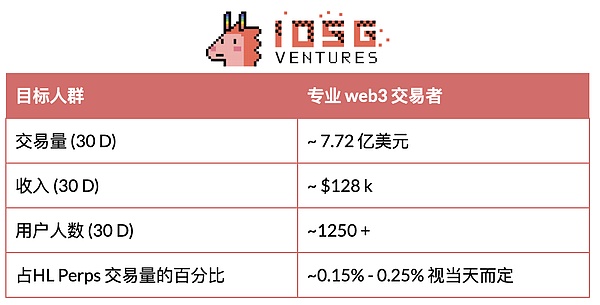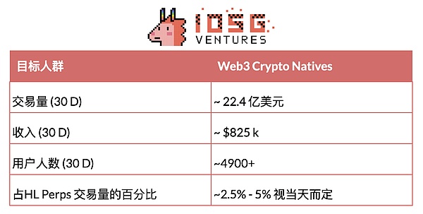 基于 HL 的原生移动应用浪潮已开启:BasedApp、Mass.Money、Dexari、Supercexy。这些应用日均交易量达 5 万美元(月重复收入 150 万美元),约占 HL 永续合约交易量的 3-6%,目标用户群体各异(加密原生用户、Web2 零售用户、专业交易者)。