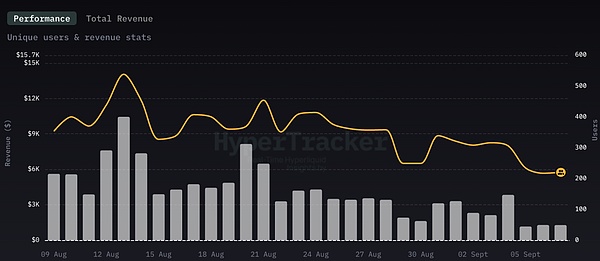 总体而言,所有相关移动交易前端(包括部分未提及的应用)的每日合并平均收入约为 5 万美元,相当于约 150 万美元的月经常性收入(MRR)。这些应用约占 Hyperliquid 永续合约总交易量的 3%-6%。作为参照,Hyperliquid 的 HLP 保险库占比约为 5%。