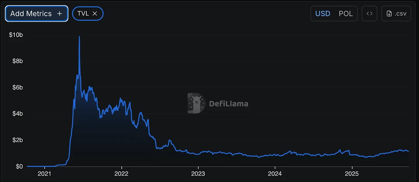 到 2025 年中,Polygon 面临新的挑战。$POL 价格从高点下跌超 80%。来自 Arbitrum 和 Optimism 的竞争性第二层解决方案正在抢占市场份额。公司在繁荣时期扩张到 600 名员工,导致文化问题和组织臃肿。
