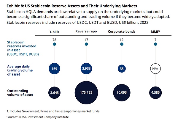 如果对稳定币发行方或存款代币出现挤兑,而发行方持有的现金又不足以满足流动性需求,则可能被逼大规模抛售资产换取现金,从而扰乱传统市场。