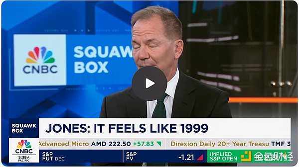 首先,我们在 CNBC 上看到Paul Tudor Jones表示,他感觉现在的情况就像1999年。