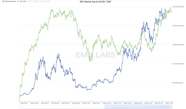 加息周期临近尾声,银根缩紧导致美国区域银行(硅谷银行、第一共和银行)出现破产案例,美国政府被迫紧急释放流动性。美国M2/DXY指数开始触底反弹,为美国股市及BTC触底反弹提供了外部环境。