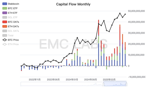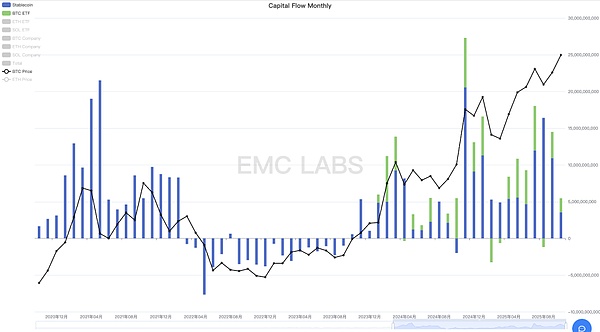 BTC Spot ETF及稳定币通道资金流动月度统计