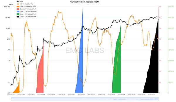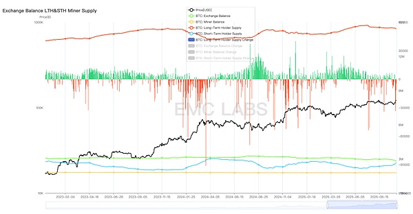 BTC正在走出旧周期进入新周期,DATs公司和BTC Spot ETF通道的资金在市场情绪与自身逻辑的驱动下,正在试图重塑周期的逻辑与形态。然而,过去16年来在周期运动中发挥决定性力量的BTC长手群体依然持有超过超过1500万枚BTC,占据已发行BTC的70%之多,且这一群体依然在按照周期律行事。