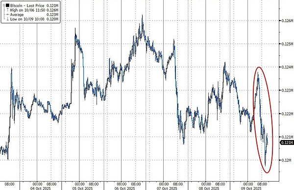 (隔夜比特币反弹失败,较日高一度下挫约3.3%)