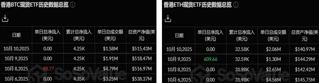 香港以太坊现货 ETF 净流入 609.66 枚以太坊,资产净值为 1.40 亿美元。