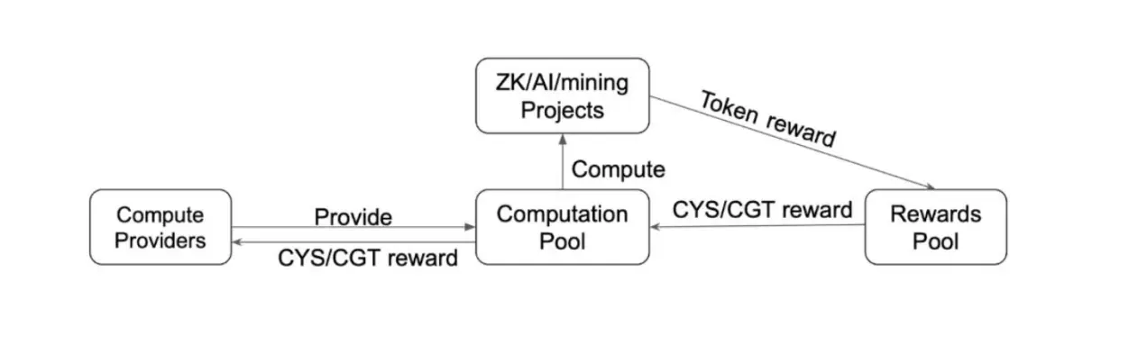 Cysic Network 通过 「Digital Compute Cube」 Node NFT 将 GPU、ASIC 等高性能算力资产代币化,打造面向大众用户的 ComputeFi 入口。每枚 NFT 即是网络节点许可(verifiable license),同时承载 收益权 + 治理权 + 参与权:用户无需自建硬件,即可代理或委托参与 ZK 证明、AI 推理与挖矿任务,并直接获得 $CYS 激励。