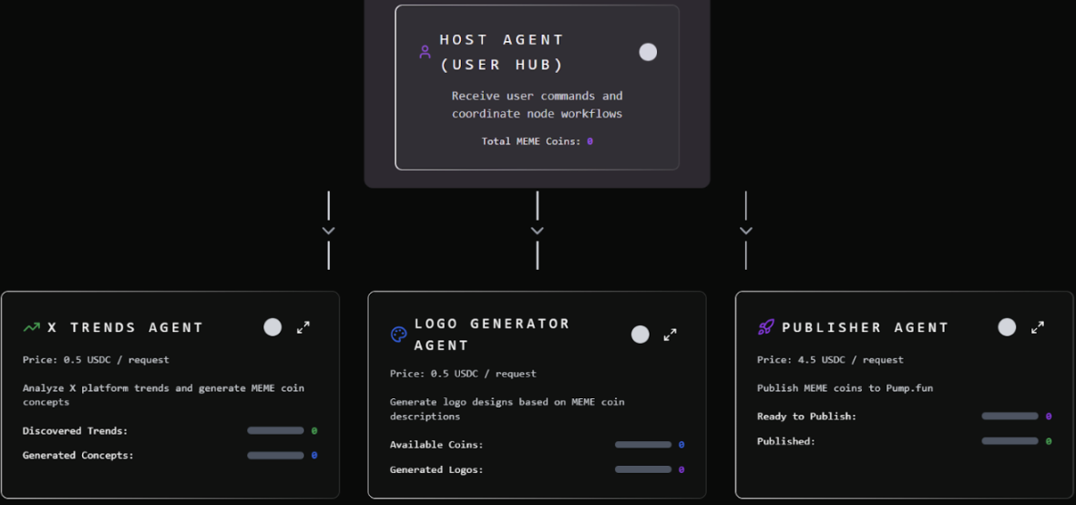 Agent Marketplace 在应用上依托 Agent Swarm Framework 提升协作效率,将多个自治智能体组合为任务协作群体(Swarm),实现分工、并行与容错;在经济上通过 Agent-to-Agent Protocol 实现链上支付与自动激励,确保安全、透明的链上结算,用户仅为成功操作付费。通过这一组合,Cysic 打造了一个涵盖 趋势分析 → 内容生成 → 链上发布 的完整闭环,展示了 AI Agent 在 链上金融化与 ComputeFi 生态 中的落地路径。