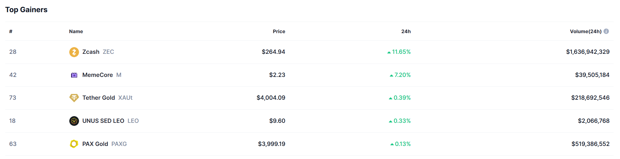 深潮 TechFlow 消息,10 月 11 日,Coinmarketcap 行情显示,ZEC 逆势上涨约 11% ,现报约 265 美元。