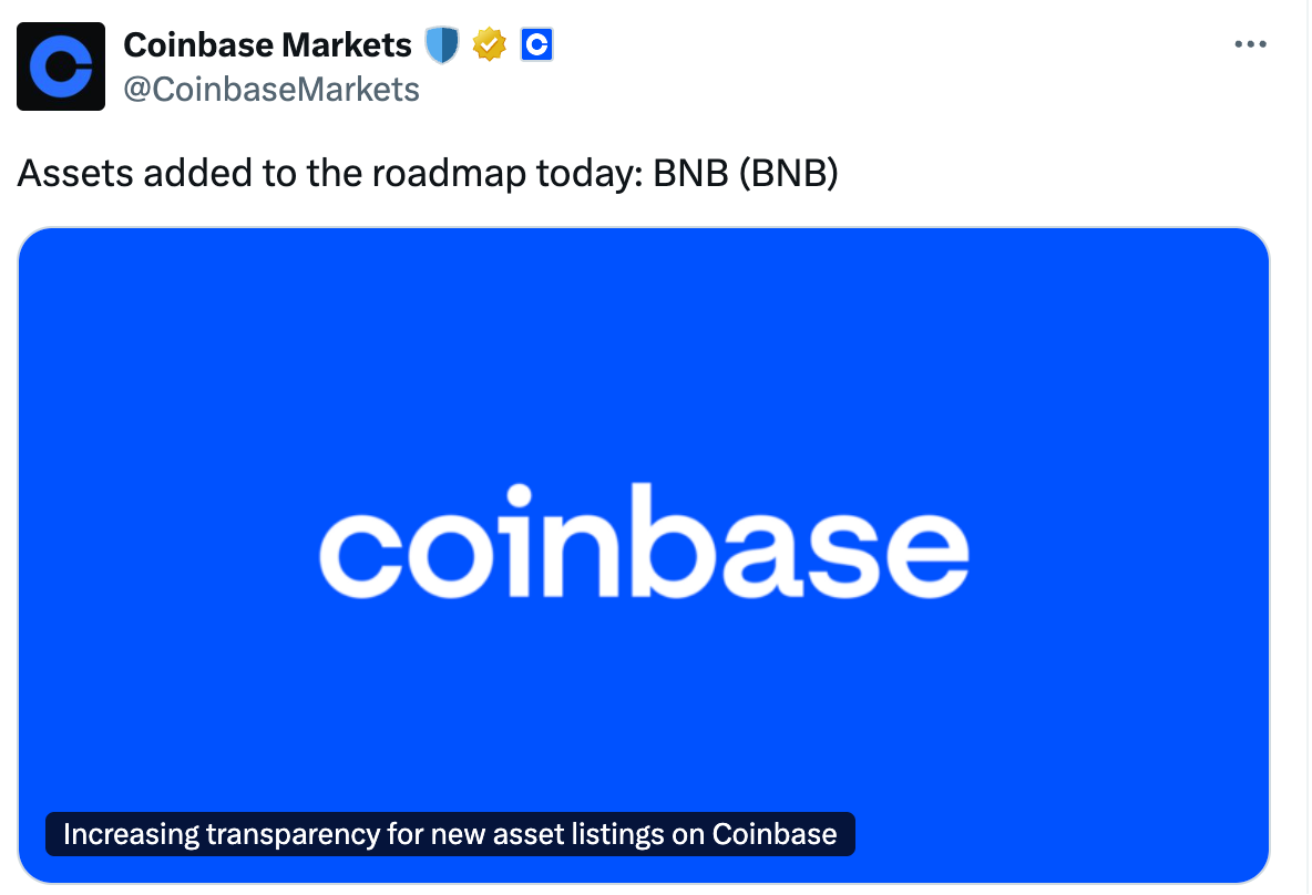 深潮 TechFlow 消息,10 月 16 日,据官方消息,Coinbase 上币路新图新增 BNB。