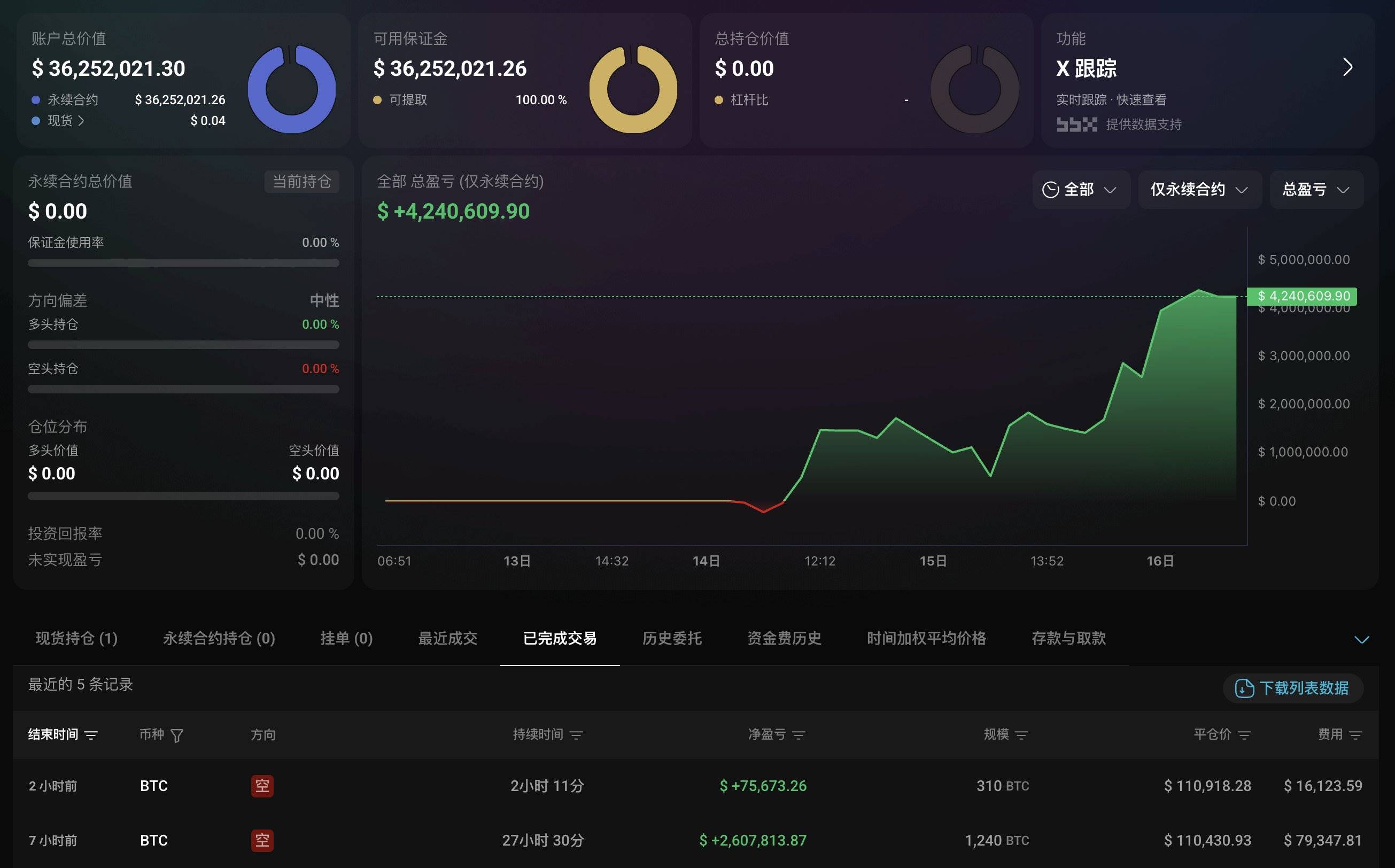 深潮 TechFlow 消息,10 月 16 日,据余烬链上分析师(@EmberCN)监测,此前卖出 5,255 枚 ETH(价值 2,200 万美元)后做空价值 1.4 亿美元比特币的某鲸鱼,已于 7 小时前平仓其比特币空单,获利 260 万美元。