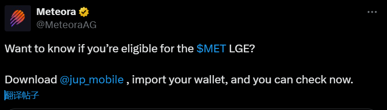 此前消息,Meteora 此前宣布 MET 代币空投分配检查器将于今日 20 点上线。