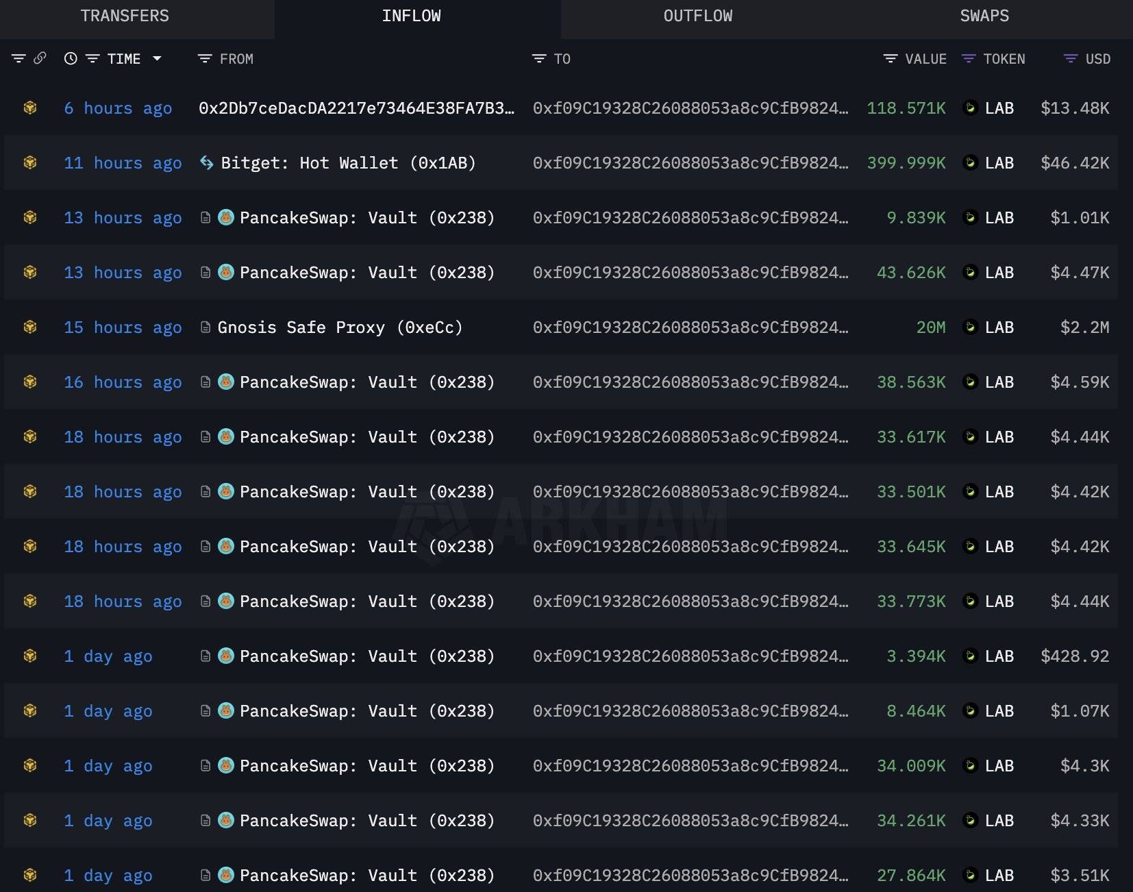 深潮 TechFlow 消息,10 月 16 日,据 Lookonchain 链上分析平台监测,在过去 30 小时内,LAB(@LABtrade_)已从币安 Alpha、Bitget 和 PancakeSwap 等平台回购超过 2090 万枚 $LAB 代币,价值约 235 万美元。