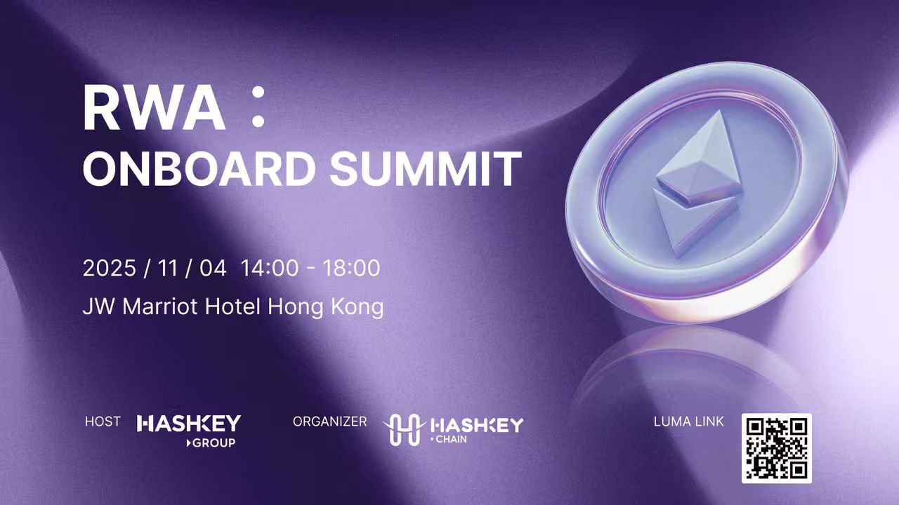 11月4日,HashKey Group 独家主办的 RWA: Onboard Summit 将聚焦现实资产上链(RWA)、ETF 与 DAT 的市场创新、合规基础设施建设与 AI + Web3 创新融合四大核心议题。