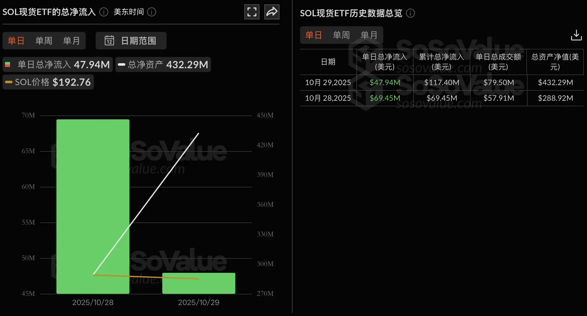 Bitwise Solana Staking ETF(代码BSOL)当日净流入 4654 万美元,累计净流入 1.16 亿美元,当日交易额 7465 万美元,总资产净值 3.30 亿美元 。