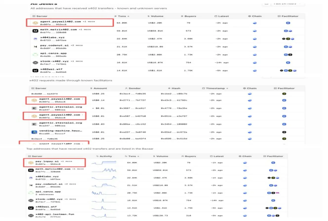ChainCatcher 消息,据官方 x402Scan 实时数据披露,AIsa 在测试阶段持续推动真实交易量增长至高位(期间多次因高频调用导致部分 Facilitator 出现宕机)。