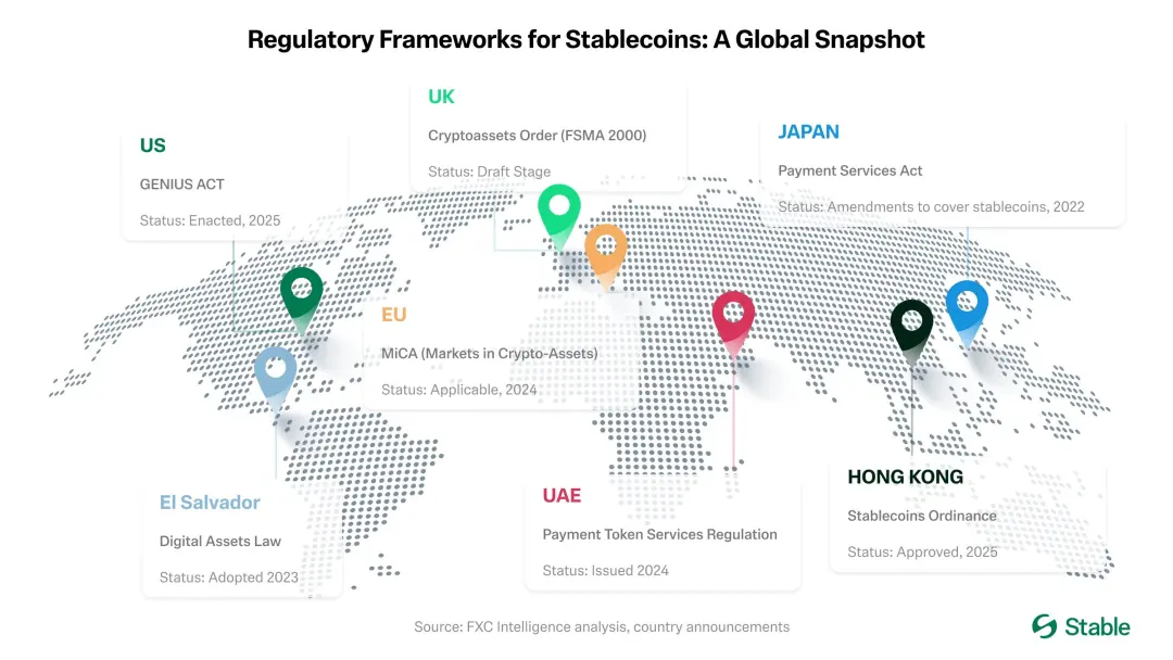 随着美国《GENIUS 法案》的生效,以及香港《稳定币条例》提供了相似的监管范本,银行、卡组织和金融科技公司正从试点阶段迈向大规模生产应用。银行开始发行自有稳定币或与金融科技公司建立紧密合作;卡组织正将稳定币纳入其后端结算体系;金融科技公司则纷纷推出合规的稳定币账户、跨境支付解决方案、内置 KYC 的链上结算以及税务报告功能。稳定币,正从交易所内的抵押品,蜕变为标准的支付“基础设施”。