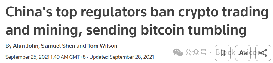 中国大陆禁止加密货币交易和挖矿 - 路透社