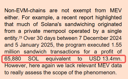 欧洲证监局(ESMA)2025 年报告统计,仅 2024/12–2025/1 的 30 天里,夹击(sandwich)交易就达 155 万笔、利润 65,880 SOL(约 1,340 万美元);(esma.europa.eu)