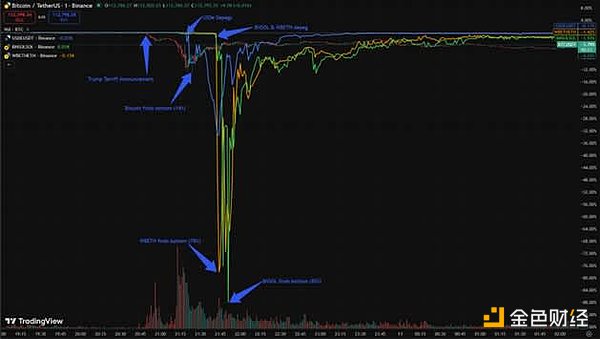 作者:Thaddeus Pinakiewicz,Galaxy Digital研究中心副总裁;翻译:金色财经xiaozou1、非理性狂欢:部分锚定资产在风暴中脱钩周五20:50UTC特朗普出人意料的关税声明引发市场剧震,开启了加密史上最大规模的名义去杠杆:约24...