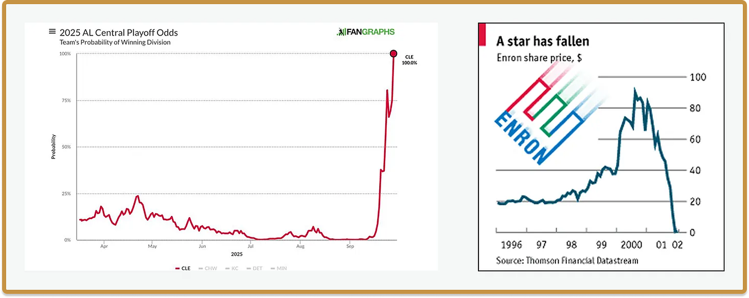 尽管这些图表非常吸引人,但它们有一个主要局限性:它们几乎只存在于政治、体育或金融市场领域。原因显而易见:这些图表的运作需要广泛接受的预测赔率,并且这些赔率必须合法使用。金融市场一直拥有这些赔率;选举则有民调数据可以利用,因此可以像奈特·西尔弗(Nate Silver)那样构建这些概率路径。而体育赛季(甚至单场比赛)则有明确的结构和足够的历史数据,可以自信地预测球队赛季中的季后赛晋级概率。除此之外,“故事形状”的形式无法更深入地扩展到流行文化中。