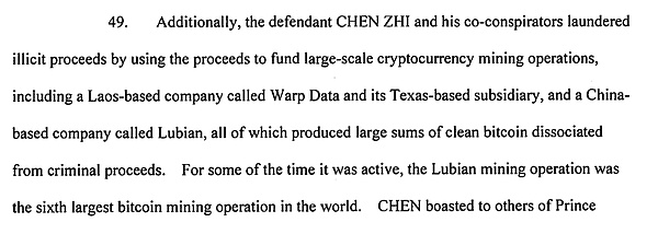 起诉书揭示,陈志及其同伙将诈骗所得投向自己控制的加密货币挖矿业务,以此 “洗出” 不带犯罪污点的全新比特币。在表面上合法的采矿过程中,原本的黑钱转换为新挖出的 “干净” 比特币资产,从而试图切断资金与犯罪之间的关联。这一洗钱策略使得太子集团名下的矿场源源不断地产出比特币,成为其隐匿赃款的重要渠道之一。