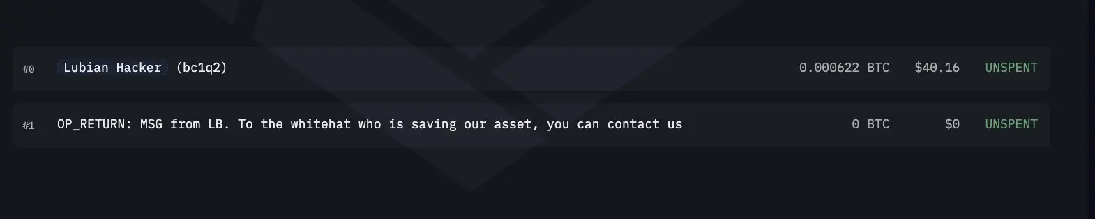 更诡异的是,部分链上交易携带留言,内容如「致拯救我们资产的白帽,请联系 1228btc@gmail.com」。由于弱私钥地址已经暴露,任何人都可以向这些地址发送带有留言的交易,这些信息不一定来自真正的受害者。