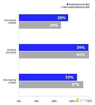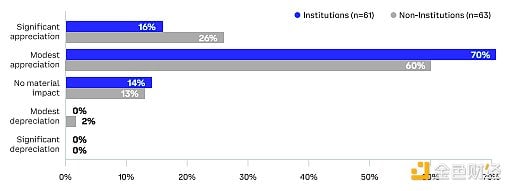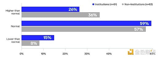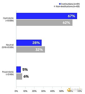 1、大多数受访者对比特币持看涨态度。在124名受访者中,67%的机构投资者和62%的非机构投资者对未来3-6个月比特币的前景持积极看法。