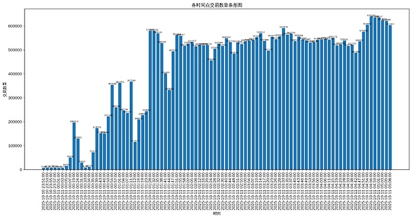 以下是10月11日00:17-05:08各Batch提交时间点处理交易数的统计图: