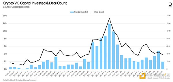 专注于加密货币的风险投资难以恢复到2021年的高点。来源:Galaxy Research