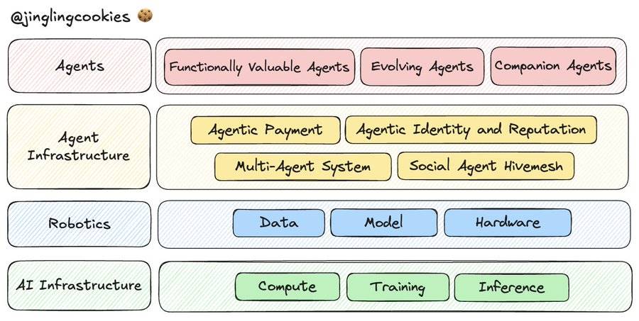 一图读懂 AI 基础设施的全栈生态。 作者:cookies 编译:深潮TechFlow这是我关于加密与 AI 基础设施成...