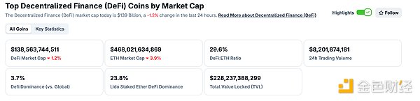 1.DeFi代币总市值:1385.63亿美元