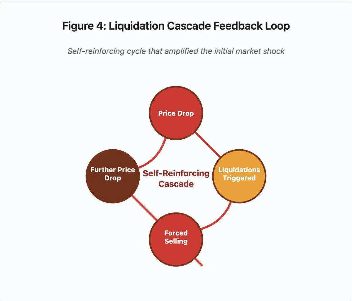 价格下跌 → 触发清算 → 强制卖出 → 价格进一步下跌 → [循环重复]