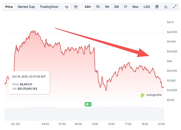事件引发市场恐慌,刚刚收复4000美元大关的以太坊下降2.5%,Layer 2代币也受波及。
