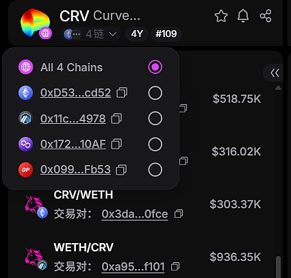 比如在UniversalX平台内,我们可以看到CRV代币在4条公链上的流动性分布情况,平台可以把用户的大额买单自动拆分为多笔小额买单,分别在不同的池子里交互,以获得最小的滑点磨损。要实现这种效果,背后必须有一套成熟的全链交互体系。