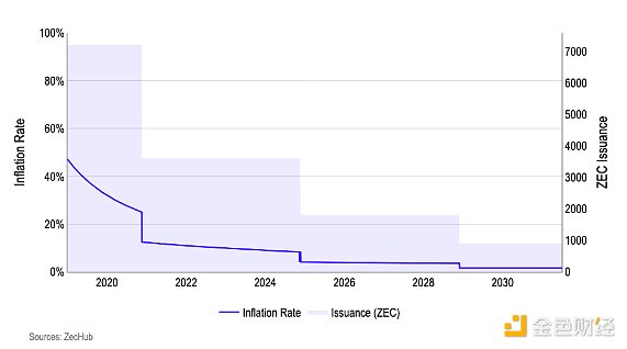 图1 Zcash 发行量预计将随 2025 年 11 月减半而大幅下降