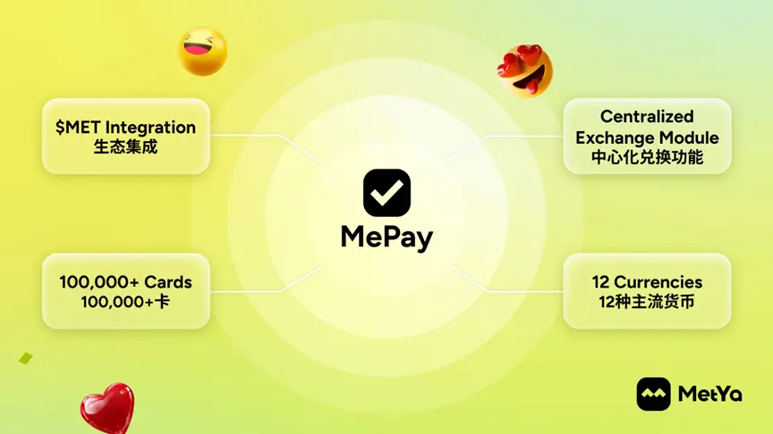 作者:Metya Official Editorial Team 近日,Metya 旗下支付品牌 Metyacard 正式升级为 MePay 并发布,正式迈向完整的 PayFi 生态。本次升级标志着 Metya 在 Web3 支付领域布局的全面深化。新升...