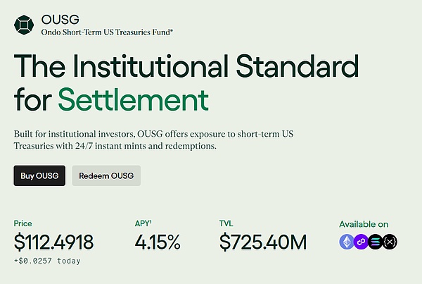 OUSG的年化收益率通常略低于USDY,但其稳定性受到机构投资者的青睐。造成二者差异的原因是,USDY除美国国债外,还投资于一些银行存款票据等,后者通常比国债的风险和收益略高。