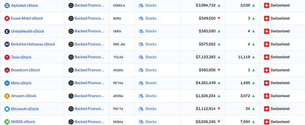 xStocks是由Backed Finance推出的代币化股票产品,几乎占据了Solana代币化股票的整个江山。上线一个月,Xstock链上总交易量就突破3亿美元,充分证明了市场对股票代币化的需求。
