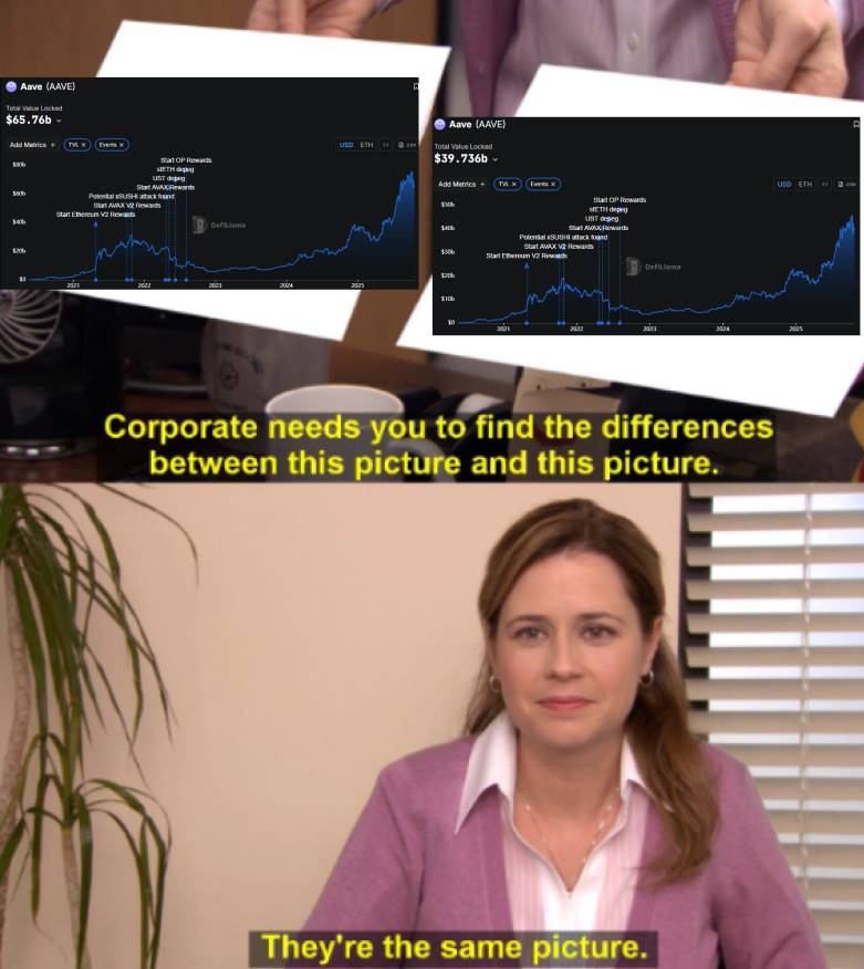 然而,这也暴露出 TVL 作为借贷协议衡量指标的问题:借款人存入资产,借出资金并重新存入借来的资金。这一过程通常会根据贷款价值比(LTV)限制重复五到十次。最终结果是 TVL 数据被人为夸大:协议会同时计算原始存款、借款人的初始存款以及循环过程中每次重新存入的资金。