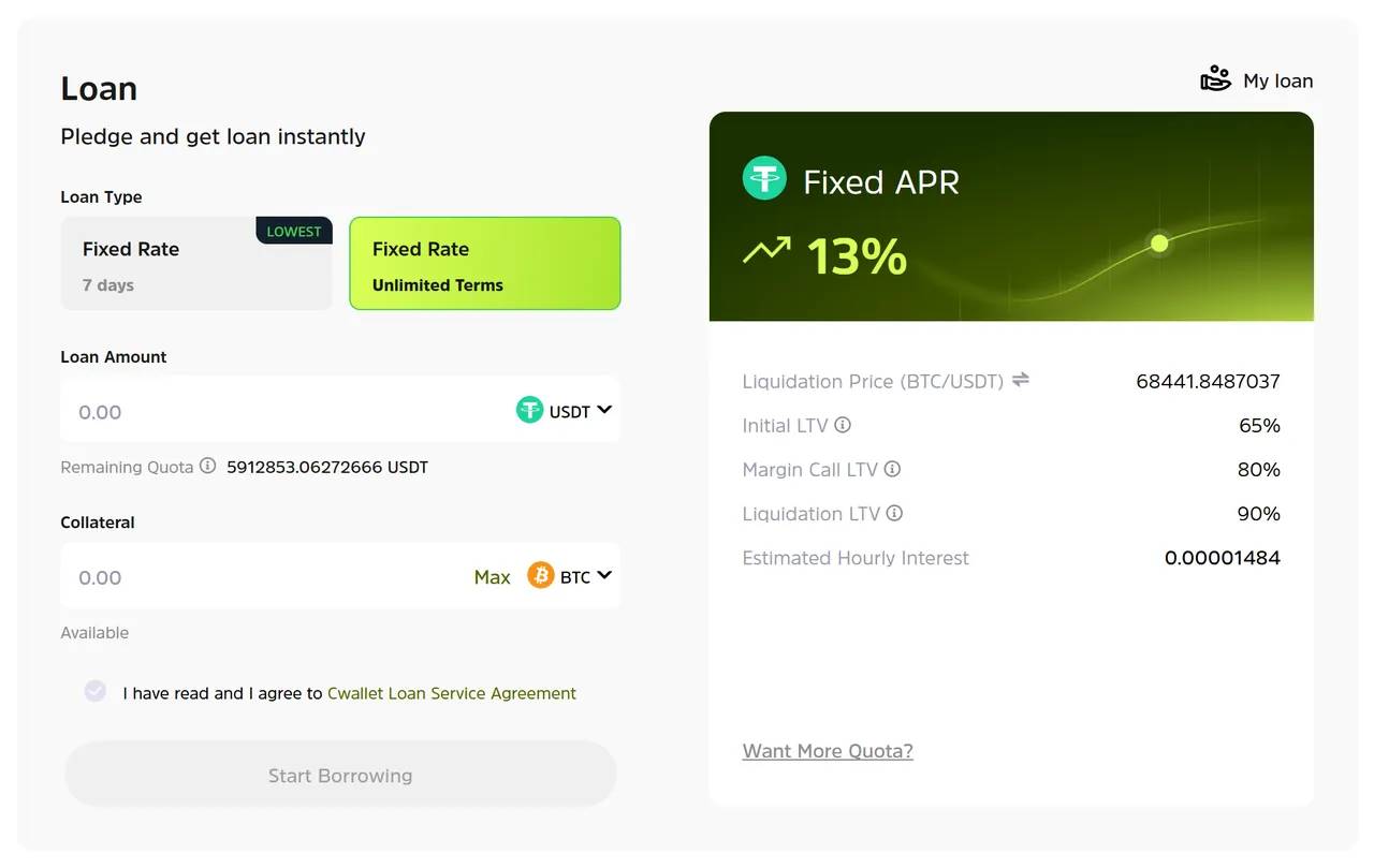 与此同时,Cwallet 借贷提供短期 7 天固定利率,也有无限期固定利率的长期模式,用户可根据自身情况灵活选择。利率精确到小时计算,年化固定利率仅为 13%,帮助用户以低成本撬动更多资金。