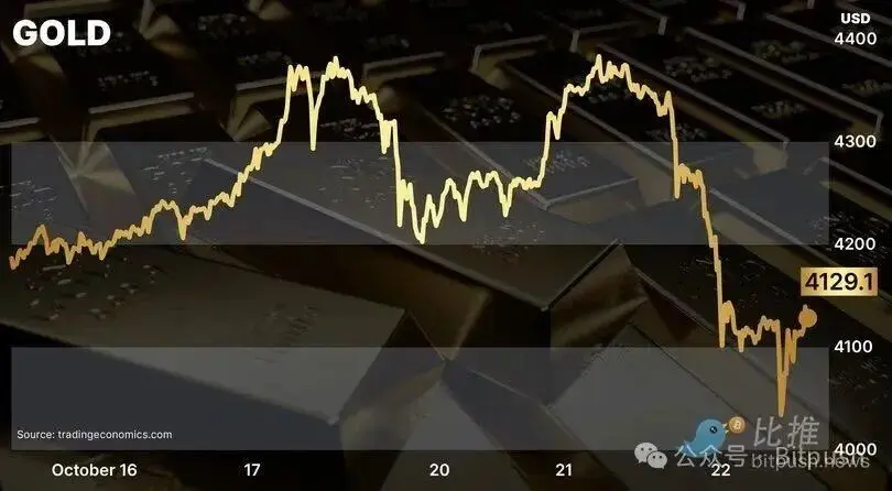 黄金“疯牛”突然上演了一场“高台跳水”。过去24小时内,在冲破4300美元历史高点后,金价急转直下,24小时内暴跌超6%,市值蒸发2.1万亿美元—-这个数字,比当时整个加密货币市场的总市值还要高出一半。据TradingView数据,这一跌幅也创下自 2020...