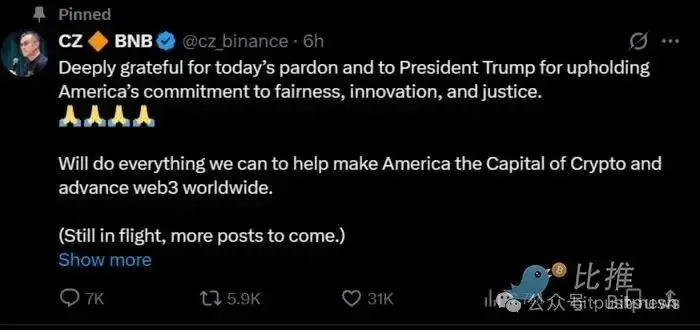 但表面的沉寂之下,社交媒体和行业传闻显示他并未完全退出币圈舞台。2025年初,有关特朗普政府可能特赦CZ的流言悄然兴起,一度在推特(现称X平台)等社交媒体上传播。