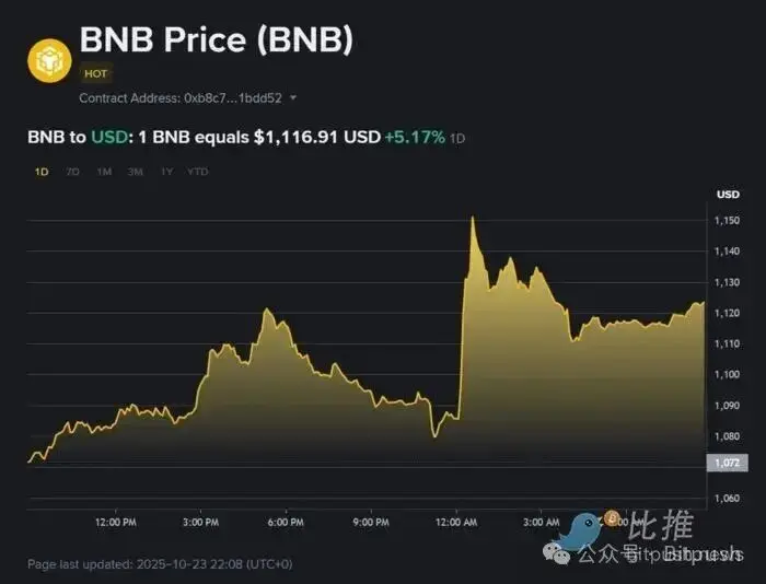 特朗普政府官员和支持者强调,CZ的罪名在其他金融业高管身上通常不会被判监禁,认定拜登政府出于敌视加密行业的政治动机“选择执法”,而特朗普只是及时纠正了这一不公。 特朗普的新任财政部长在接受采访时甚至表示:“对加密行业的战争已经画上句号,美国将致力于成为全球加密资本。”市场也对此迅速反应:特赦消息公布后,币安交易所发行的BNB代币价格瞬间拉升,短短数小时内从1083 USDT上涨到1160 USDT,涨幅达6.7% 。