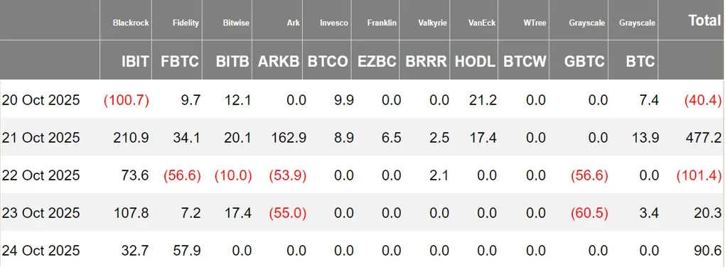 上周 9 只 ETF 处于净流入状态,流入主要来自 IBIT、ARKB、FBTC,分别流入 3.24 亿美元、5400 万美元、5230 万美元。