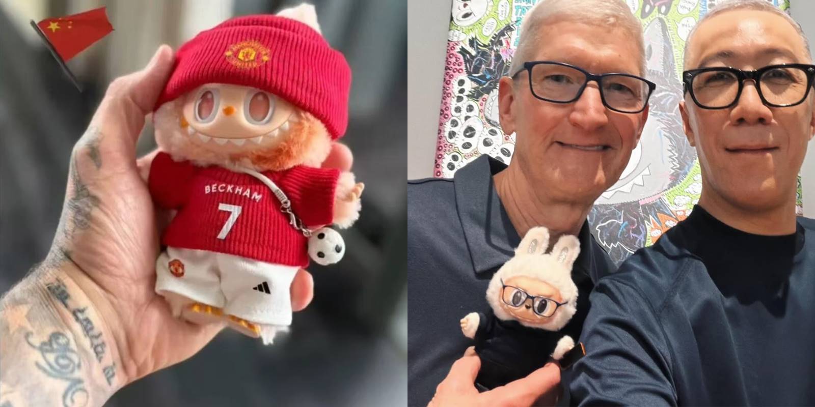 展示定制款娃衣的贝克汉姆和库克