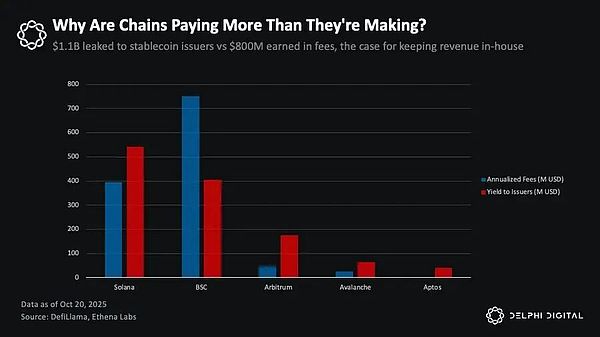 简单来说,这些生态系统每年都在流失数亿美元的稳定币收益。哪怕只将其中一小部分留在链上自行捕获,都足以重塑其经济结构——为公链提供一种比交易手续费更稳健、更具抗周期性的收入基础。